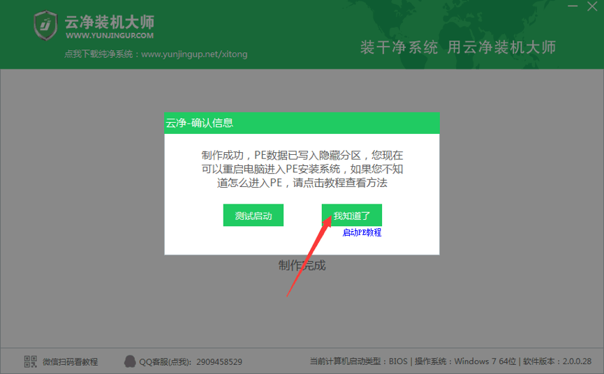1.下载载并且运行云净U盘启动制作工具,插入u盘等待软件成功读取到u盘之后,点击制作U盘启动盘。